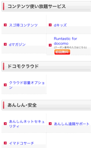 以下、マイドコモで変更・加入・解約できるオプションやサービスなどです。