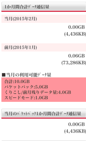 自宅も会社もWi-Fiがあるので、2015年1月に使用したパケット量は、たった0.06GB(60MB)でした・・・。
