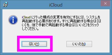 Windowsを再起動すると、次回以降自動的にiCloudが起動するようになります。
