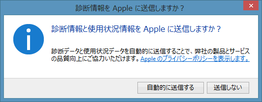 診断情報と使用状況情報をAppleに送信するか選択します。