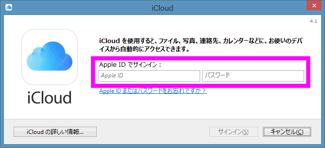 Windows用のiCloudが表示されます。