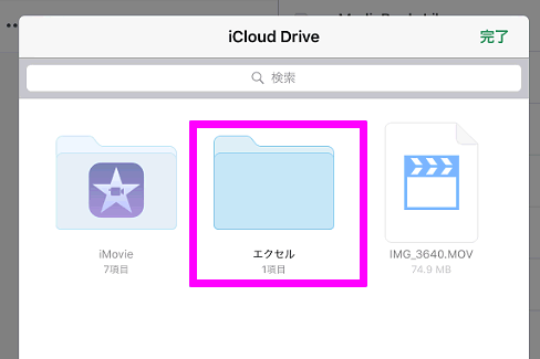 iPadの方にも「エクセル」というフォルダが作成されていました。