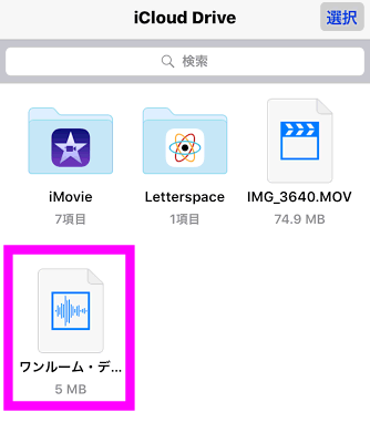 iCloud Driveに保存することによって、iPhoneやパソコンでも再生させることが出来るようになります。