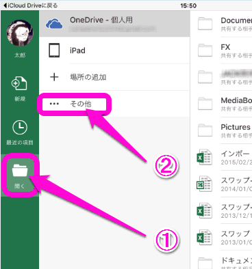 エクセルアプリからiCloud Driveのファイルを開くことも出来ます。