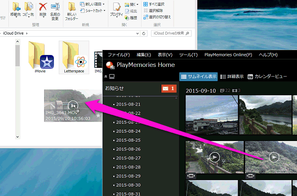 パソコンに保存してある動画をiCloud Driveのほうにコピーしてみました。