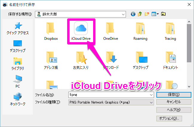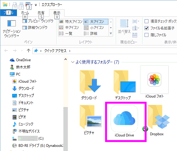 すると、「クィックアクセス」の中に「iCloud Drive」がありました。