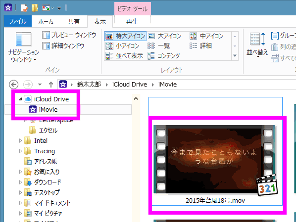 パソコンの方のiCloud Driveを開くと、「iMovie」の中にiPadで編集した動画がありました。