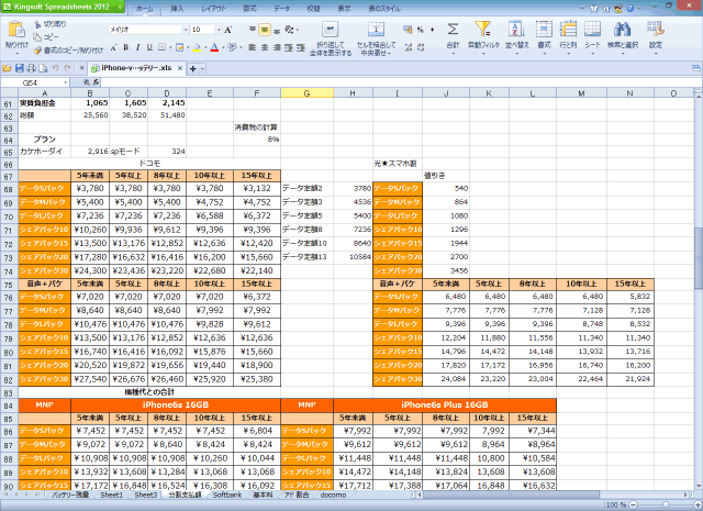 パソコンで編集しているエクセルです。(実際にはキングソフトのSpreadsheetですが)