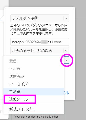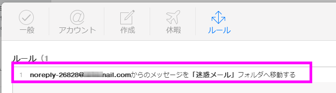これで「noreply-26828@wldemail.com」から届くメールは自動で「迷惑メール」に移動するようになりました。