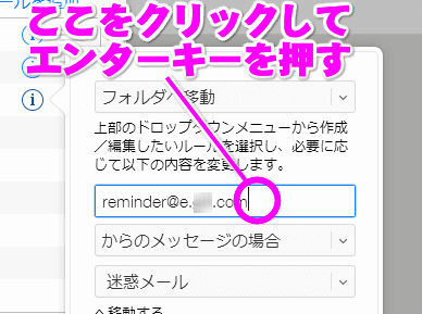 ルールを保存するには、一度メールアドレス欄の部分をクリックし、キーボードの「エンターキー」を押してください。