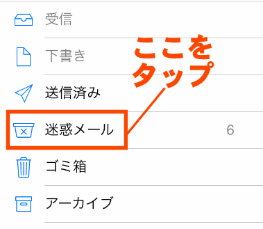 更にメニューが表示されるので、「迷惑メール」をクリックします。