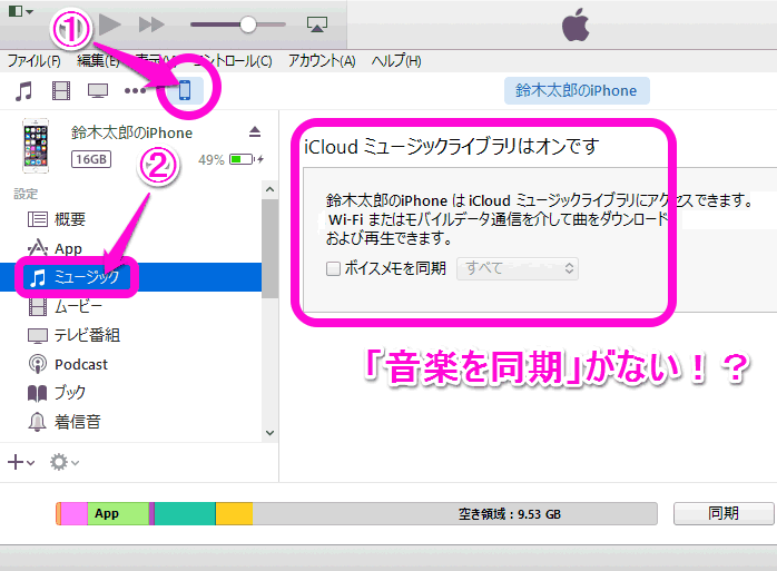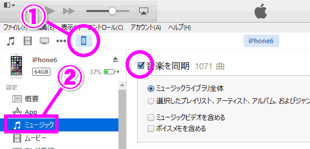 今までどおり、「音楽を同期」のチェックが出来るようになりました。