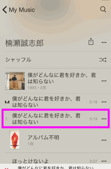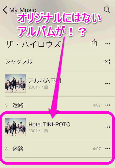 CDから保存した場合、「アルバム不明」になっていますが、Apple Musicの場合はちゃんとアルバム名が表示されています。