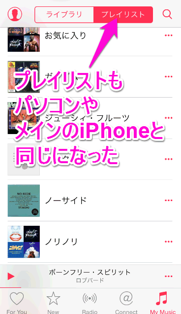 プレイリストもパソコンやメインで使用しているiPhoneと同じになりました。