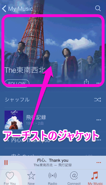 Apple Musicで公開されているそのアーチストの他の曲も聞いたりすることができます。