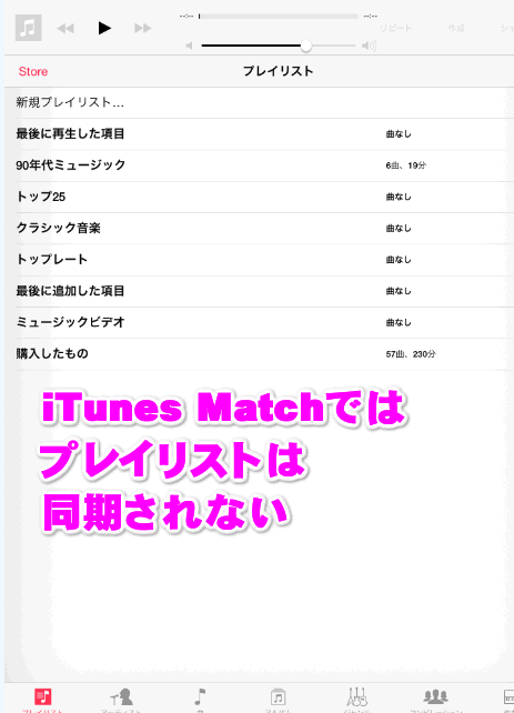 ・iTunes Matchは、プレイリストは同期されない。
