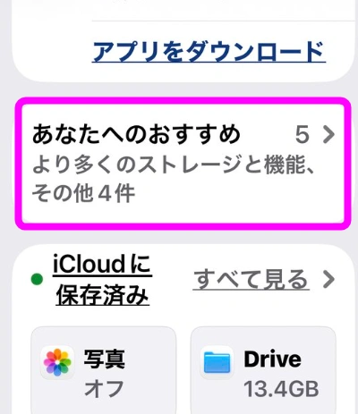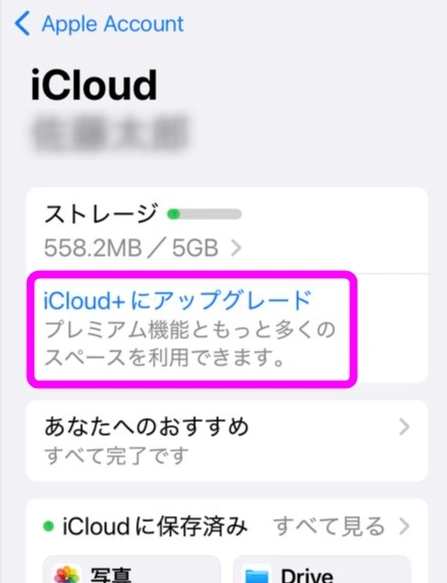 この場合は「iCloud+にアップグレード」をタップしてください。