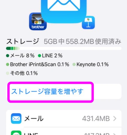 もし、「写真などをiCloud上にバックアップしておきたい」「iPhoneのバックアップをとりたい」なんて場合は、有料で容量を増やすことが出来ます。