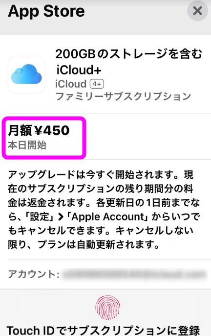 iCloud+のサブスクの支払いは、他の有料サブスクと同じです。