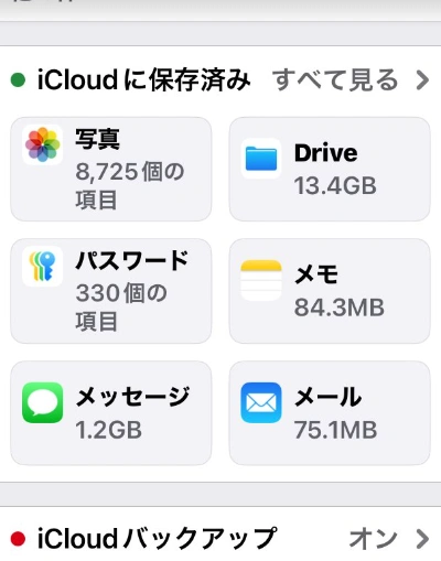 「iCloudストレージ」の容量を確認してみると、このようにだいぶスッキリしました。