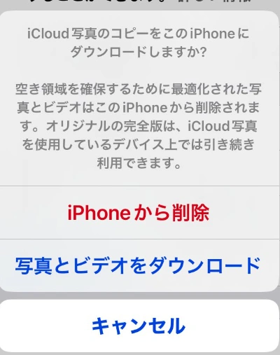 ただし、以前iCloudにバックアップした写真がiPhone内にある場合、その写真と動画は削除されてしまいます。