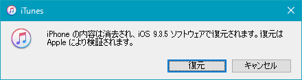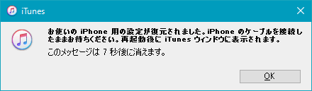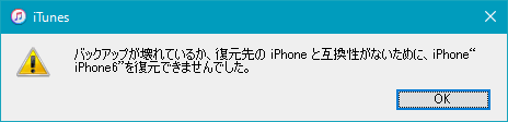 なお、バックアップしたときのiOSとダウングレードしたときのiOSのバージョンが同じでないと復元に失敗するので注意。