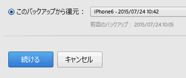 このようにバックアップした日付や時間が表示されるので、複数のバックアップがある場合は参考にしてください。