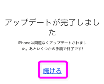 アップデート??とドキッとしましたが、ちゃんとダウングレード出来ています。「続ける」をタップ。