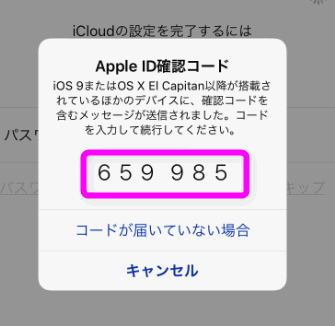 2段階認証を設定している人は、「Apple ID確認コード」を入力します。