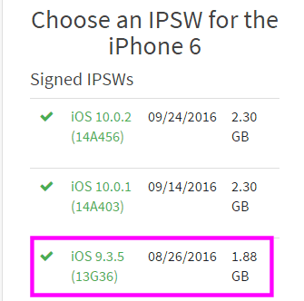 ダウングレードしたいiOSの最新のバージョンをクリックします。