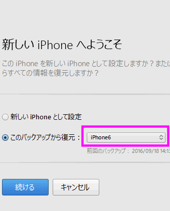 バックアップから復元するか、新しいiPhoneとして使用するか選択します。