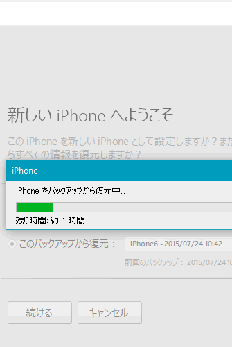 ただし、まだバックアップからの復元は開始されていないので注意。