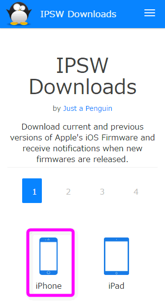 まず、IPSW downloadのページへ行きます。(パソコンから)