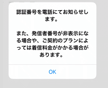 固定電話はSMS(ショートメール)が受信できないので、「通話による認証」をタップします。