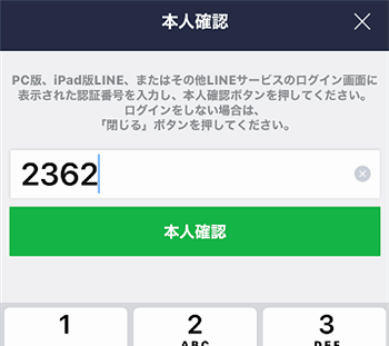 iPadのLINEで表示された数字をiPhone・スマホのLINEに入力します。