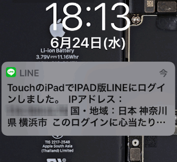 iPhoneに他の端末でログインがあったことを知らせる通知が届きます。