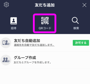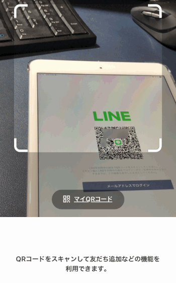 先ほどiPadのLINEに表示されたQRコードをカメラのフレームに表示させます。