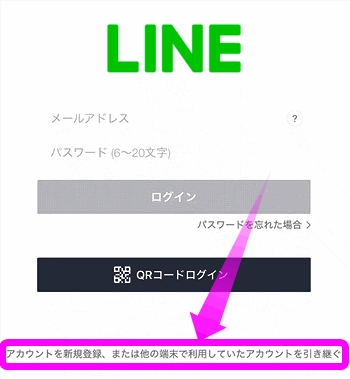 ※ログイン画面左下の「スマートフォン・携帯電話以外でのみLINEを使用していた方」をタップしていただければ、アカウントの引き継ぎ画面が表示されます。