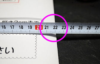 封筒には「この封筒は郵便ポストに投函下さい」と記載されていますが、こんな大きな封筒、ポストに入るのか??と、思って測ってみると22.5センチほどの幅が有りました。