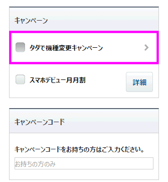 SoftBankの下取りは、「タダで機種変更キャンペーン」という名前のようです。ここをタップします。