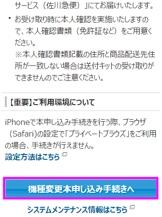 色々な注意事項が記載されているので、目を通したら「機種変更本申し込み手続きへ」をタップします。