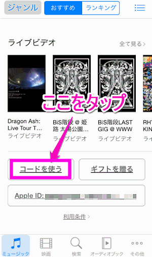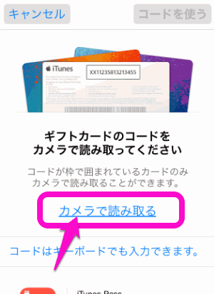 最初はコンビニ等で販売されている「iTunes カード」の使い方から。