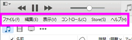 メニューバーを表示させるには、iTunesの左上にある小さな三角をクリックします。