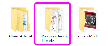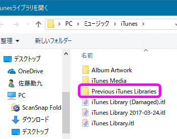「ミュージック」フォルダの中の「iTunes」フォルダの中に「Previous iTunes Libraries」というフォルダがあります。