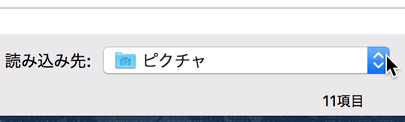 イメージキャプチャの中央下部に「読み込み先」がありますが、ここに転送されます。デフォルトでは「ピクチャ」になっています。別の場所に保存したい場合はここをクリックして場所を指定します。