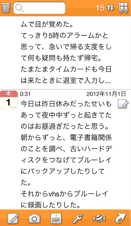 日記アプリはいろいろ数がありますが、最もデザイン的にも優れていて入力もしやすいのが「瞬間日記」。