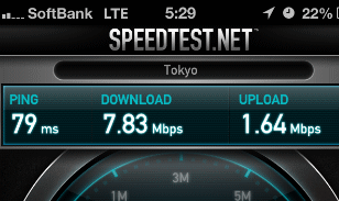 以前、iPhone4で計測した時(auとSoftBank iPhoneの回線速度比較)では1~1.5Mbpsでしたが、6~9倍ほどの速度です。