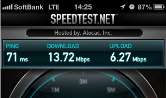 上りは1.41Mbpsであまり速くありませんが、iPhone4の時の8倍ぐらいの速度になっています。