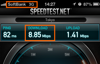 iPhone5では3G回線も速くなっていると聞いていましたが、なんと8.85Mbps!