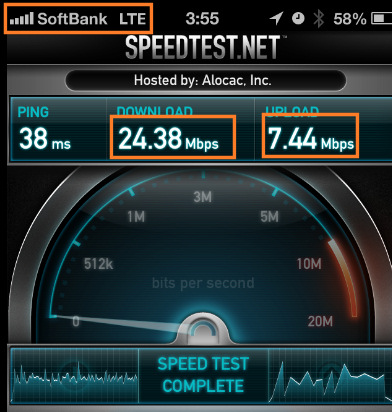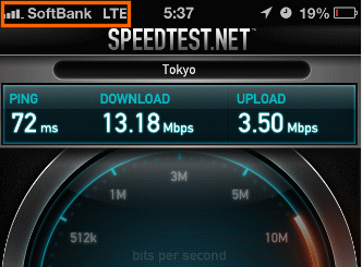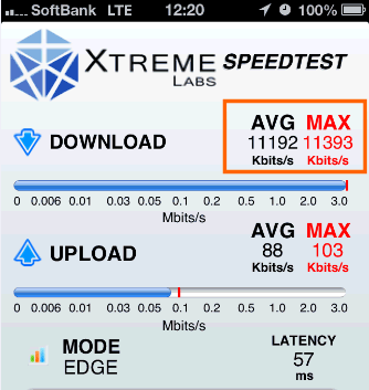 3Gは7.4Mbpsですが、iPhone4の頃は1Mbpsぐらいだったので、iPhone5では3G回線も数倍速くなったことがわかります。